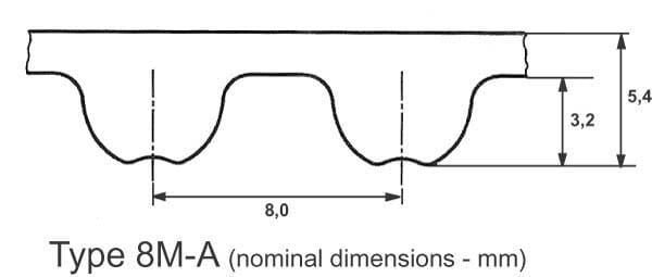 Pas de dent : 8 mm