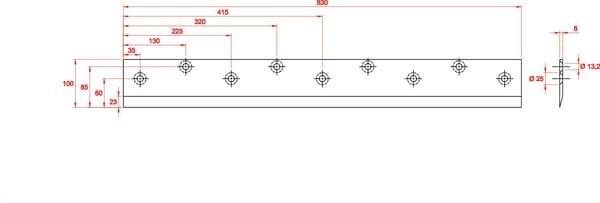Couteau à ensilage L=830mm pour godet désileur
