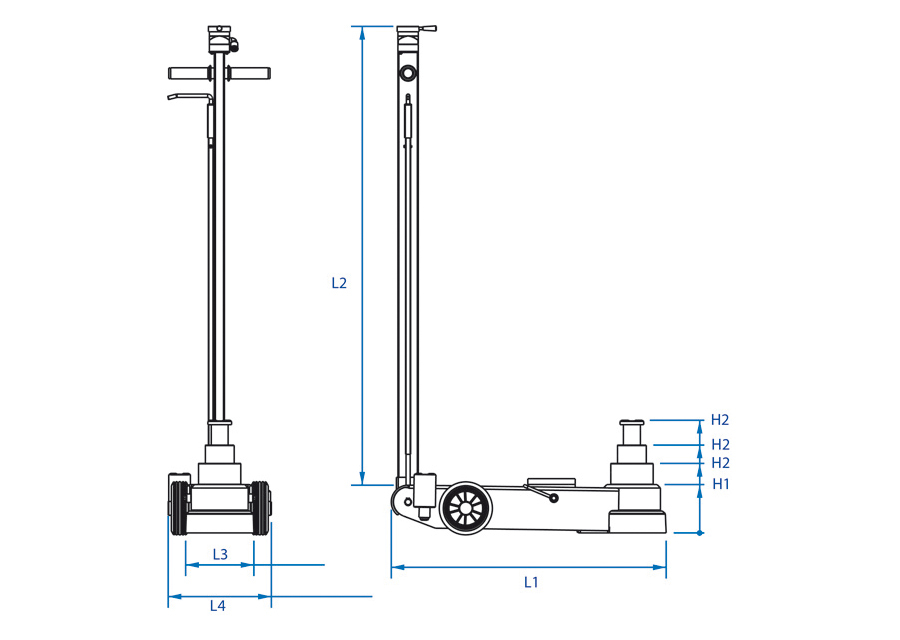 Cric hydropneumatique universel à 2 étages pour bus et camion 25/10T