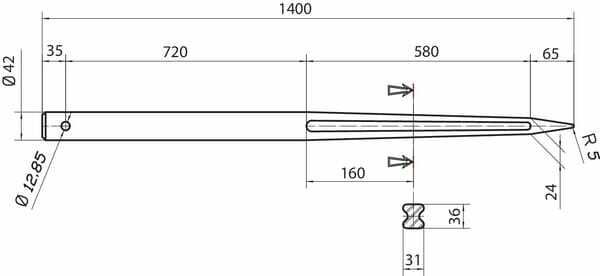 Dent de chargeur 42x1400