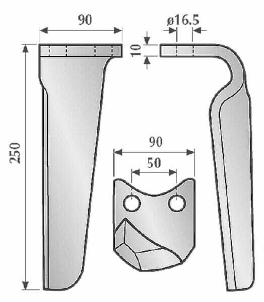 Sens de rotation : Gauche Longueur : 250 mm Hauteur : 85 mm Largeur : 90 mm Épaisseur : 10 mm Nombre de trous : 2 Diamètre des trous : 16,5 mm Distance entre orifices : 50 mm Convient pour la marque de machine/véhicule : Morra Type de protection contre l'usure supplémentaire : n/a Référence d’origine : 10100209