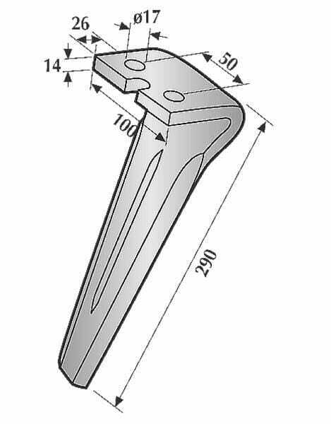 Sens de rotation : Droite Longueur : 290 mm Hauteur : 90 mm Largeur : 90 mm Épaisseur : 14 mm Nombre de trous : 2 Diamètre des trous : 17 mm Distance entre orifices : 50 mm Convient pour la marque de machine/véhicule : Forigo Type de protection contre l'usure supplémentaire : n/a Référence d’origine : RLM58001