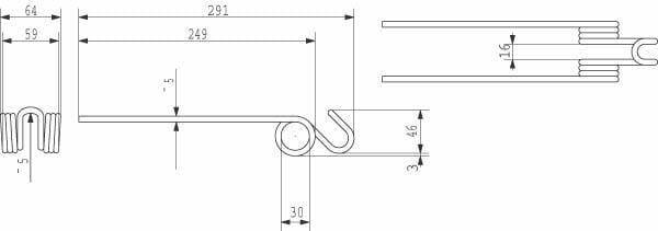 Convient pour la marque de machine/véhicule : Pöttinger Longueur totale : 291 mm Largeur : 64 mm Diamètre du fil : 5 mm Diamètre intérieur de bobine : 30 mm Type : Avec bobine Couleur : Rouge Référence d’origine : 200.06.017.0 / 436.020 / 436.120 Convient pour le modèle de machine/véhicule : 160 / 162 / 180 / 200 / 220, KR 185