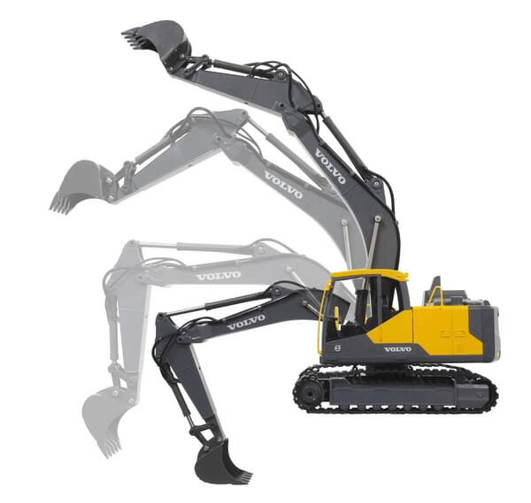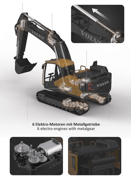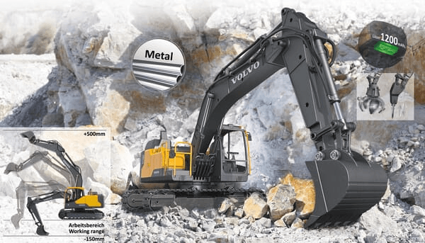 DiggerVolvo EC160E Metal 1:16 avec grappin à obus et marteau de démolition
