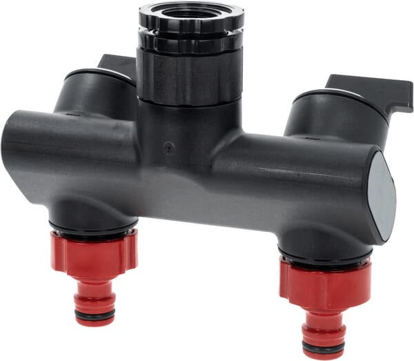Détails du produit : • Le nouveau raccord ergonomique permet une connexion simultanée de deux appareils à un robinet • Les vannes avec des symboles d'ouverture et de fermeture clairs permettent un contrôle intuitif et fluide du débit d'eau • Le débit peut être réglé séparément pour chaque sortie • En utilisant des raccords appropriés, il est possible de connecter le distributeur avec des tuyaux de différents diamètres • La large gamme de raccords permet la connexion d'accessoires d'arrosage (par exemple des minuteries numériques) de grandes dimensions • Fait d'un composite de fibre de verre durable • Convient aux vannes G1/2'', G3/4'' et G1''