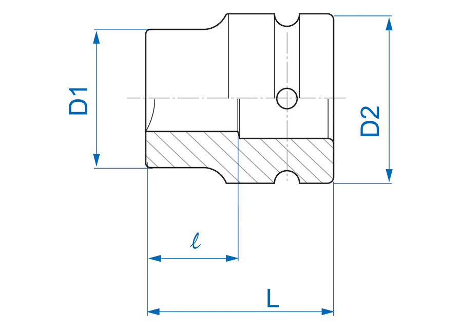 Douille à chocs 1" (25,40mm) standard pouce 4 pans