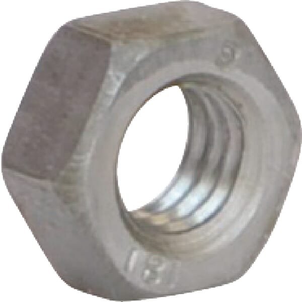 Écrou hexagonal avec filetage métrique. La norme ISO 4032 remplace la norme DIN 934 , les tailles de clés 16, 18, 21 et 34 correspondent aux tailles respectives M10, M12, M14 et M22.
