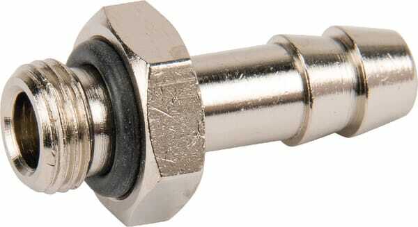 Forme : Droit Type de raccord n°1 : Extrémité de tuyau Type de raccord n°1 - mâle/femelle : Mâle Diamètre raccord n°1 : 8 mm Longueur raccord n°1 : 19 mm Type de raccord n°2 : Filetage Type de raccord n°2 - mâle/femelle : Mâle Diamètre du raccord n°2 : 8 mm Diamètre de filetage raccord n°2 : 1/8 Inch raccord n° 2 nombre de filet au pouce : 28 Longueur de filetage raccord n°2 : 6,5 mm Type de filetage raccord n°2 : BSP Taille de clé de raccordement n°2 : 14.0 mm Hauteur : 30 mm Matériau : Laiton Traitement de surface : Nickelé Pression de service maximale : 60 bar Température de service maximale : 100 °C Température de service min. : -20 °C Matériau d'étanchéité : Caoutchouc nitrile [NBR] Matériau : Laiton nickelé