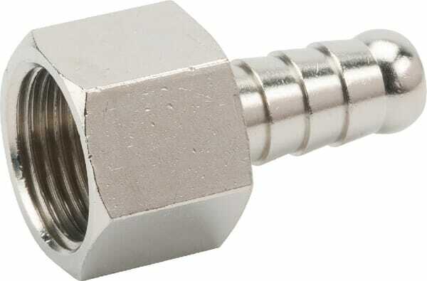 Forme : Droit Type de raccord n°1 : Filetage Type de raccord n°1 - mâle/femelle : Femelle Diamètre raccord n°1 : 3/8 Inch Filetages au pouce du raccord n°1 : 19 Longueur du filetage du raccord n°1 : 11,5 mm Type de filetage du raccord n°1 : BSP Raccord n°1, taille de clé : 19.0 mm Type de raccord n°2 : Extrémité de tuyau Type de raccord n°2 - mâle/femelle : Mâle Diamètre du raccord n°2 : 9 Inch Diamètre du raccord n°2 : 9 mm Type de filetage raccord n°2 : n/a Distance du centre de connexion à l’insert : 19 mm Hauteur : 34,5 mm Matériau : Laiton Traitement de surface : Nickelé Pression de service maximale : 60 bar Matériau : Laiton nickelé