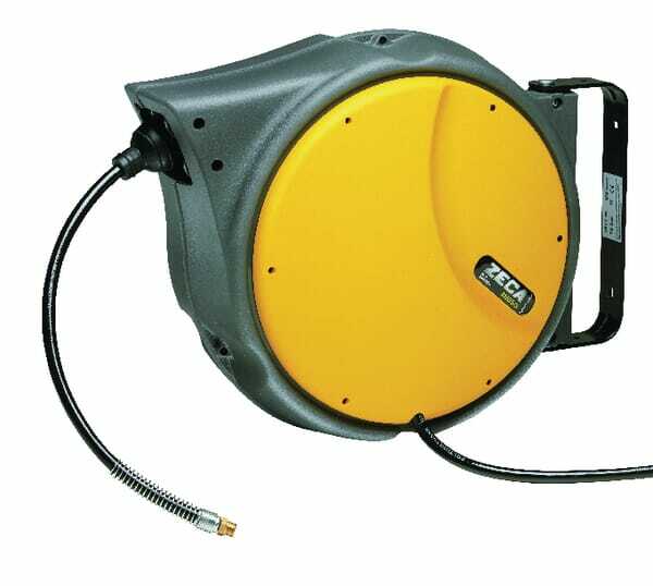 Se compose de : - Enrouleur de flexible à air - Avec étrier orientable - Alimentation sans adaptateur de raccordement, extrémité de tuyau libre