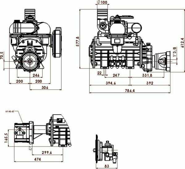 Se compose de : - Sans soupape de surpression (article 0200013) et soupape de dépression (article 0155513) - Moteur hydraulique et douille cannelée non compris - Les pompes sont livrées sans huile lubrifiante (article BP5070) - Avec socle hydraulique pour installation du moteur hydraulique