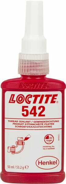 LOCTITE 542 est conçu pour fixer et sceller les tuyaux métalliques, les raccords et autres assemblages métalliques cylindriques. Il est recommandé pour les filetages fins utilisés dans les applications hydrauliques, pneumatiques et générales. Ce produit durcit en l'absence d'air et enfermé entre des surfaces métalliques bien ajustées. Il empêche le desserrage et les fuites dus aux chocs et aux vibrations, offre une étanchéité instantanée à basse pression et résiste au carburant, à l'huile, aux liquides de refroidissement et aux fluides hydrauliques. LOCTITE 542 est thixotrope, ce qui signifie que peu de gouttes couleront après application sur la pièce.