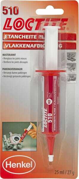 LOCTITE 510 est un mastic de résistance moyenne qui peut être utilisé pour les surfaces de bride irrégulières et les rayures jusqu'à 0,25 mm sur les pompes, les embrayages, les boîtes de vitesses et les blocs moteurs. Il a une haute résistance aux produits chimiques et à la chaleur et offre une étanchéité immédiate à basse pression. LOCTITE 510 durcit en emprisonnant l'air entre des surfaces métalliques bien ajustées.