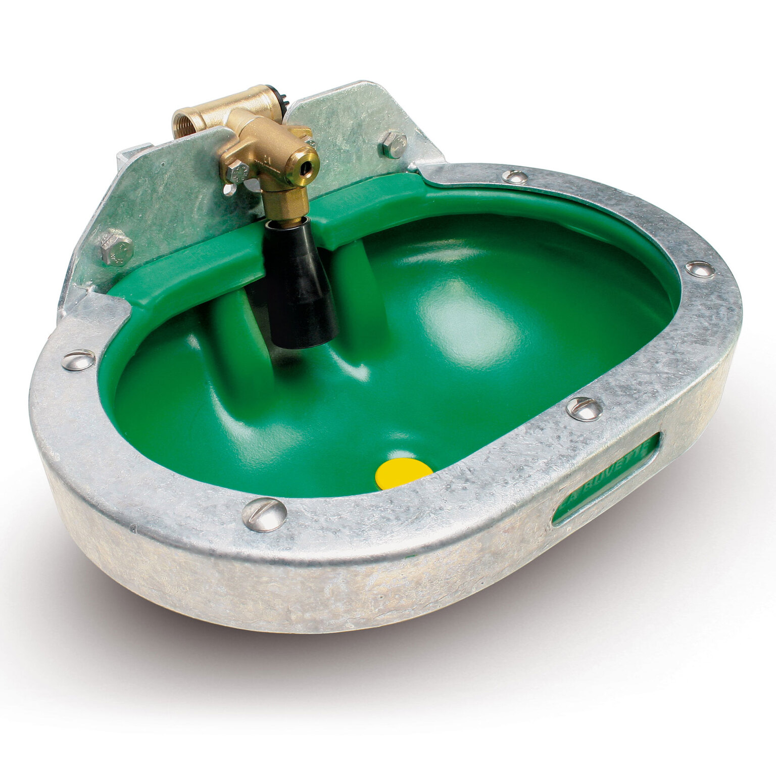 Bol très large en PEHD rotomoulé avec rebord anti-lapage et protection intégrale galvanisée.