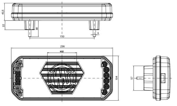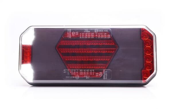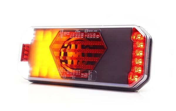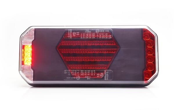 Feu arrière multifonction LED, droit, avec plaque d'immatriculation latérale, rouge/orange/blanc, 12-24 V, 236 x 104 x 40,5 mm
