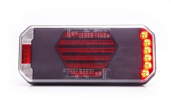 Feu arrière multifonction LED, droit, rouge/orange/blanc, 12-24 V, 236 x 104 x 40,5 mm