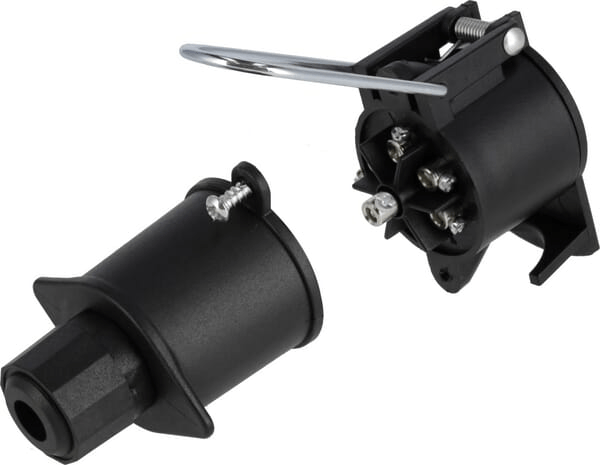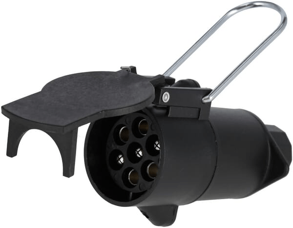 Fiche de remorque 7 pôles, plastique, 12V, bornes à vis, protection contre les intempéries