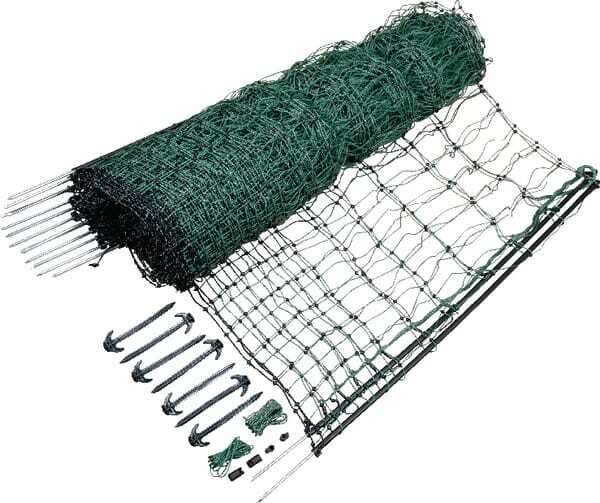 Se compose de : - Filet pour poules - 15 piquets avec tige simple ou double (fixée dans le filet)