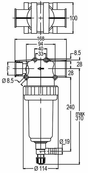 Filtre sous pression 1 1/4"F 200 l/min 50 mailles