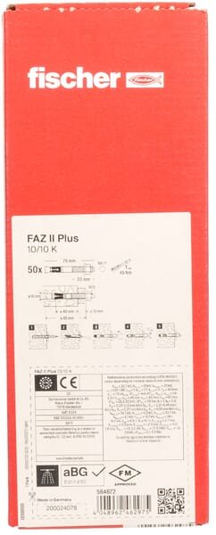 FISCHER FAZ II PLUS 10/10 K EV (10X75) 50 pièces