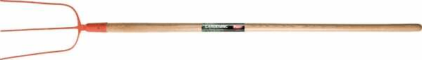 Informations techniques : Fourche à fumier avec manche boule en frêne, légèrement courbé ·Aérer et déplacer le tas de fumier ·Avec douille ·Dents laquées en rouge, forgées et trempées