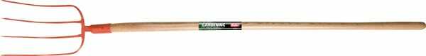 Informations techniques : Fourche à fumier avec manche boule en frêne, légèrement courbé ·Aérer et déplacer le tas de fumier ·Avec douille ·Dents laquées en rouge, forgées et trempées
