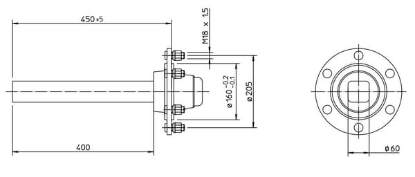 Fusée d'essieu non freinée 60x400mm (160/205/6)