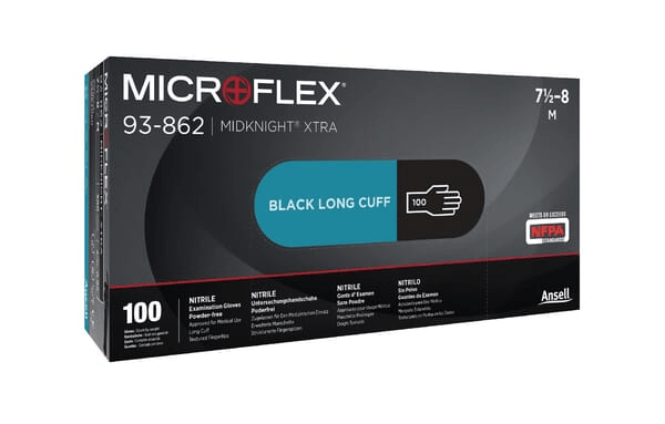 Gant jetable noir, rendant l'huile, la graisse et la saleté plus visibles. Protection : Saleté Numéro de taille : 7 Taille S/M/L : S Matériau : Nitrile Norme EN : 374-5:2016 Catégorie : n/a Série : MidKnight™ Norme ISO : 9001:2000 Couleur : Noir Application industrielle : Chimique Spécifique à l'activité : Travail Poudré : Non Nombre de pièce dans l'emballage usine : 100 pcs Type de conditionnement : Boite Détails du produit : - Manchette longue pour la protection de l'avant-bras - Caoutchouc nitrile pour un confort et une flexibilité élevés