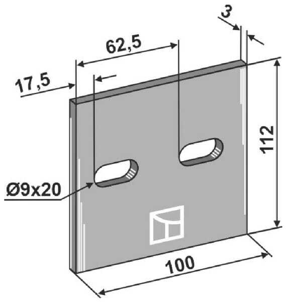 Longueur : 100 mm Largeur : 110 mm Épaisseur : 3,2 mm Matériau : Hardox®450 Diamètre des trous de montage (largeur) : 20 mm Entraxe des perçages : 45 mm Référence d'origine : 1164529440 Convient pour la marque de machine/véhicule : Lely Type de protection contre l'usure supplémentaire : Hardox®