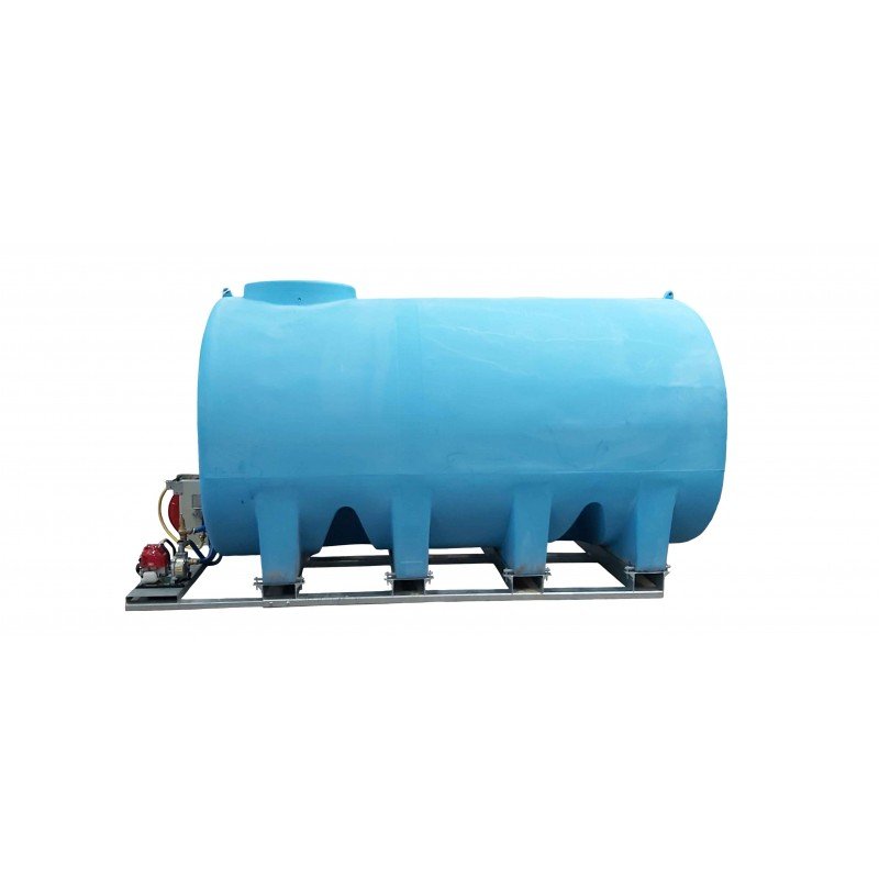 Groupe d'arrosage constitué d'une cuve à eau AQ8000H bleue montée sur châssis avec Motopompe de 680L/min