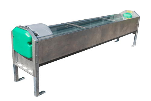 Bac monobloc inox d’environ 600 litres pour les éleveurs de grands troupeaux laitiers recherchant un grand confort de buvée pour leurs vaches et un important volume d’eau disponible.
