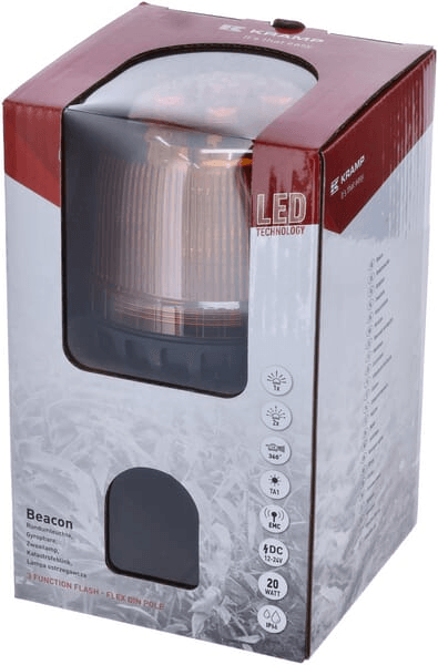 Gyrophare LED, 20W, 12-24V, ambre, montage sur poteau flexible, Ø 126mm x201mm