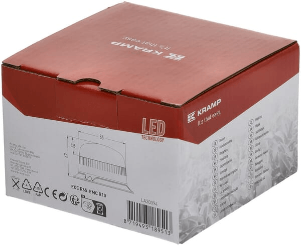 Gyrophare LED, profil bas, 15W, 12-24V, orange, à visser, Ø 86mm x67mm