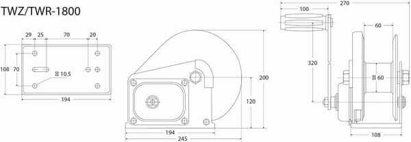 Informations techniques : - levier démontable - frein automatique - rapport + frein dans un logement fermé - cliquet double (TW 1800 + TW 2600) - fixation de câble simple - livré sans câble en acier