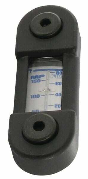 Un indicateur de niveau d'huile indique les niveaux d'huile minimum et maximum. Le voyant transparent avec thermomètre intégré permet de vérifier visuellement la couleur et la clarté du liquide dans le réservoir. Une huile trouble peut indiquer la présence possible d'humidité, tandis qu'une huile décolorée peut indiquer une surchauffe et une contamination.