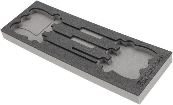 Ces modules en mousse Krampsont idéales pour disposer les tiroirs Kramp des chariots à outils avec uniquement les outils réellement utilisés ! Longueur : 398 mm Largeur : 132 mm Hauteur : 30 mm Points forts : - Les outils sont clairement rangés dans leur niche et protégés contre les dommages. - Les contours clairement visibles de l'outil facilitent la remise en place de l'outil dans le bon logement. Détails du produit : - Les différents niveaux permettent de saisir facilement les outils - Résistant aux huiles et graisses - Ce module en mousse convient au servantes Kramp - Facile à nettoyer avec de l'eau, du savon et une brosse à ongles.