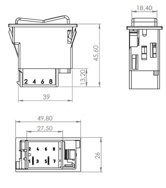 Interrupteur à bascule, I-0, marche-arrêt, 12/24V, 2 pôles, éclairage de fonction