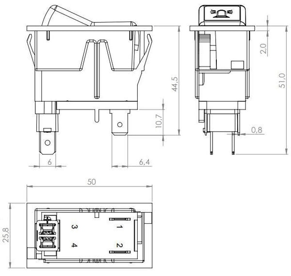 Interrupteur à bascule, I-0, off-on, 12V, 2 broches, gyrophare