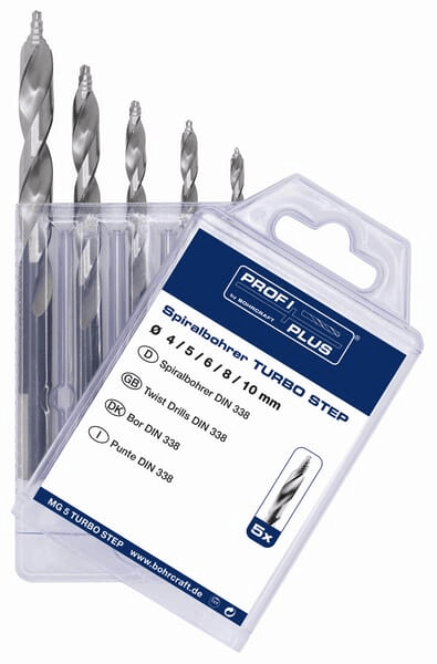 Jeu de forets 5 pièces. HSS-DIN 338-G Turbo STEP