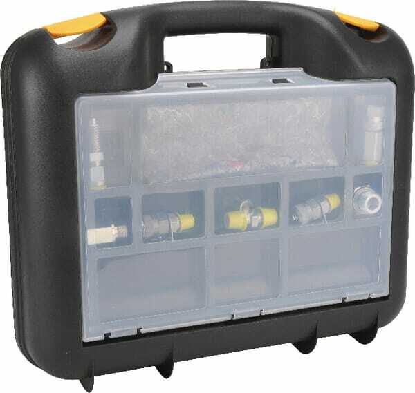 Plage de pression de mesure : 0-600 bar Type de conditionnement : Mallette de transport Détails du produit : - Dimensions caisse : 355 x 300 x 80 - Le système de commutation rapide a une connexion M16 x 2 Comprend : - Voir pièces détachées pour TKA001-TKA002