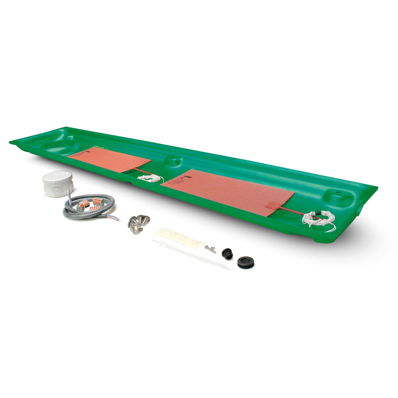 2 résistances adhésives 24 V /175 W à coller directement sous la cuve inox. Le capot en PE optimise le transfert de chaleur vers la cuve et évite les déperditions.
