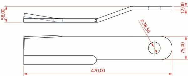 Lame de gyrobroyeur courbé 75x470 G.