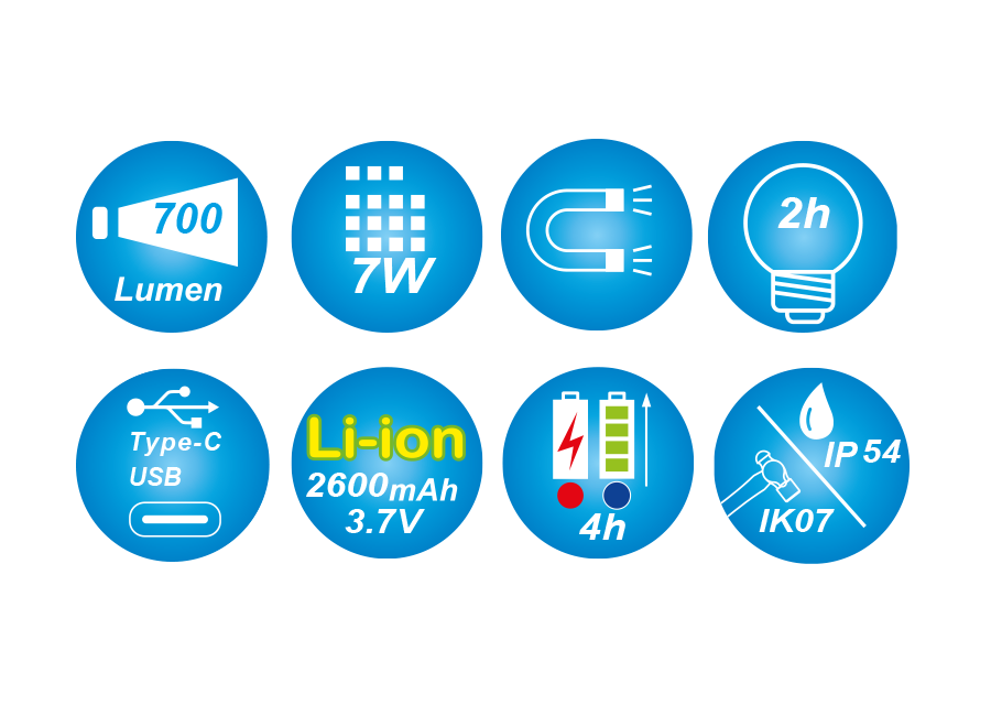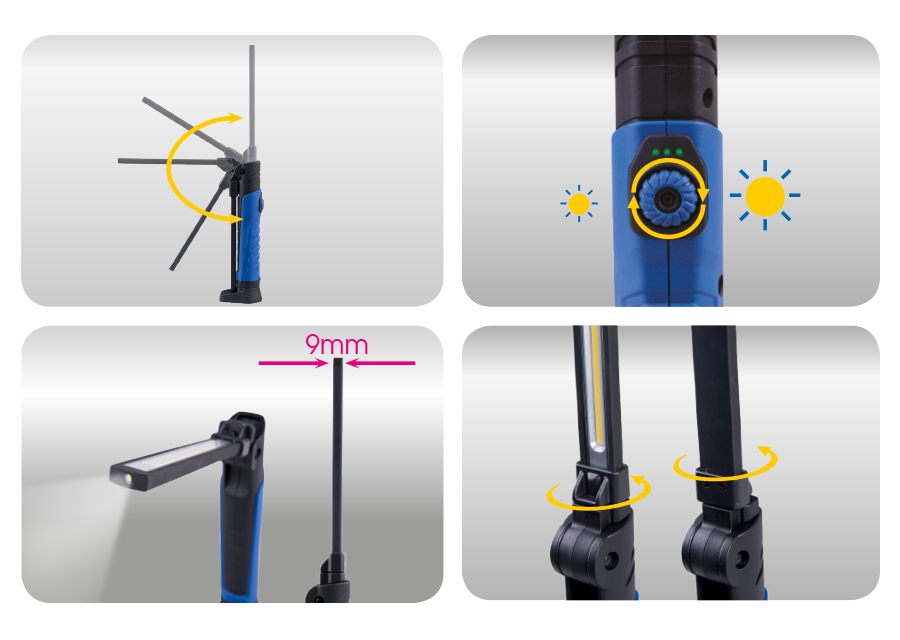 Lampe d'inspection aluminium slim pliable et rechargeable COB+SMD LED