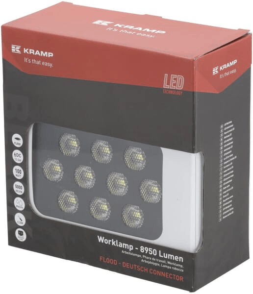 Lampe de travail LED, 100W, 8950lm, rectangulaire, 12/24V, blanc, 150x112x52,7mm prise Deutsch, faisceau large, 20LED