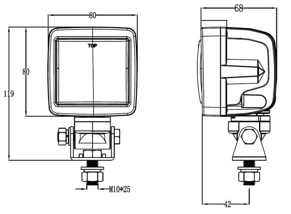 Lampe de travail LED, 45W, 6600lm, carrée, 10/30V, 80x68x80mm,Deutsch prise, faisceau large, tête pivotante