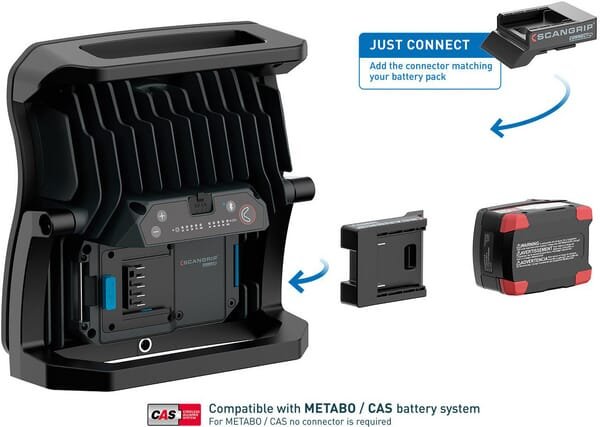 La NOVA 10 CONNECT, puissante et robuste, produit jusqu'à 10 000 lumens, ce qui en fait une lampe de travail polyvalente pour les professionnels exigeants. Ce qui est tout à fait unique, c'est que le NOVA 10 CONNECT est compatible avec le système de batterie METABO/CAS 12 V - 18 V et toutes les autres batteries 18 V des plus grandes marques d'outils électriques telles queMilwaukee ,Dewalt ,Makita , etc. à l'aide de l'adaptateur SCANGRIP CONNECTOR.