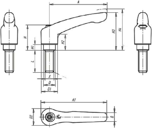 Levier serrage GR2 M8x40 basc.