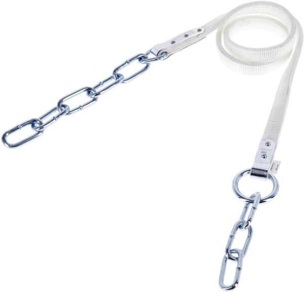 Informations techniques : - double couture - renforts métalliques - avec anneau sur l'attache - les parties métalliques se composent de: partie haute: 1 triangle et 5 maillons 8 x 54 mm partie basse : 1 anneau 10 x 50 mm et 3 maillons 8 x 54 mm