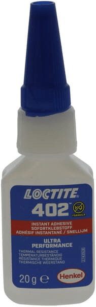 LOCTITE 402 est un adhésif instantané pour le collage de petites pièces dans des applications de production à grande vitesse, ou pour des réparations rapides et ponctuelles. Il adhère rapidement et fermement à une large gamme de matériaux tels que le plastique, le caoutchouc, le métal et même les matériaux difficiles à coller. Cet adhésif instantané de viscosité moyenne est résistant à la température, durable et à durcissement rapide. Sa composition brevetée contient des ingrédients moins dangereux.