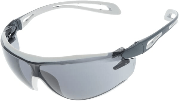 Détails du produit : - Un design innovant pour un ajustement personnalisé et un confort tout au long de la journée - Les branches bi-matières pivotantes et flexibles offrent un ajustement antidérapant des plus confortables - Pont de nez antidérapant réglable souple offrant un positionnement optimal - La bride souple co-injectée directement tout autour de l'objectif offre un ajustement complet et une protection appropriée contre la poussière et les particules de différents côtés - Ce verre de sécurité n'a pas de pièces métalliques - Disponible en fumé, Clear KN UV400 donne la bonne solution pour chaque application - Normes : EN 166 : 2001, EN 170 : 2002, EN 172 : 1994 + A2 : 2001